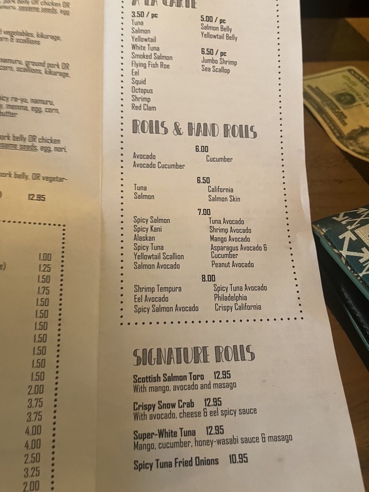 Spicytuna, spicy crabmeat with a layer of avocado & fried onion with spicy mayo